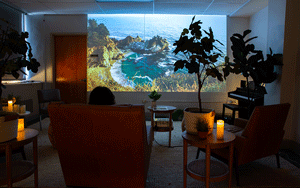 The founding principle of recharge rooms is rooted in the science showing that exposure to nature can profoundly benefit a person’s physical and mental health. To this end, the rooms offer voice-activated, immersive experiences that simulate natural environments such as oceans and rainforests. These settings are designed to address anxiety, stress, and trauma while improving cognitive performance.